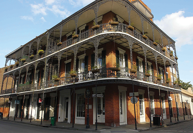 New Orleans architecture reflects Spanish, French, and Caribbean influences. With a curved façade, floor-to-ceiling windows, wrought iron galleries, and overhanging flower baskets, the Miltenberger Houses appear in just about every guidebook of New Orleans as an example of French Quarter architecture.
