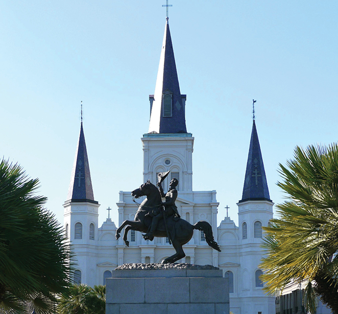 Jackson Square is home to the famous statue of Andrew Jackson on horseback commemorating his victory in the Battle of New Orleans. The statue was erected in 1856 and is the first equestrian statue to have more than one unsupported leg.