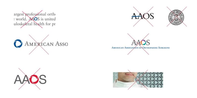 The AAOS logo, including the wordmark, cannot be used as a part of a sentence or headline. In such cases, the un-stylized letters, “AAOS” or fully spelled out words may be used.