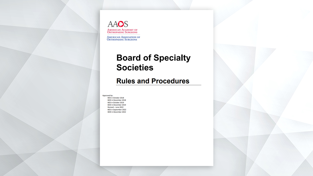 The Board of Specialty Societies (BOS), originally created in 1984 as the Council of Orthopaedic Musculoskeletal Specialty Societies, brings together the leaders of musculoskeletal societies to address issues of mutual concern, such as advocacy, continuing medical education, research, and residency and fellowship issues.