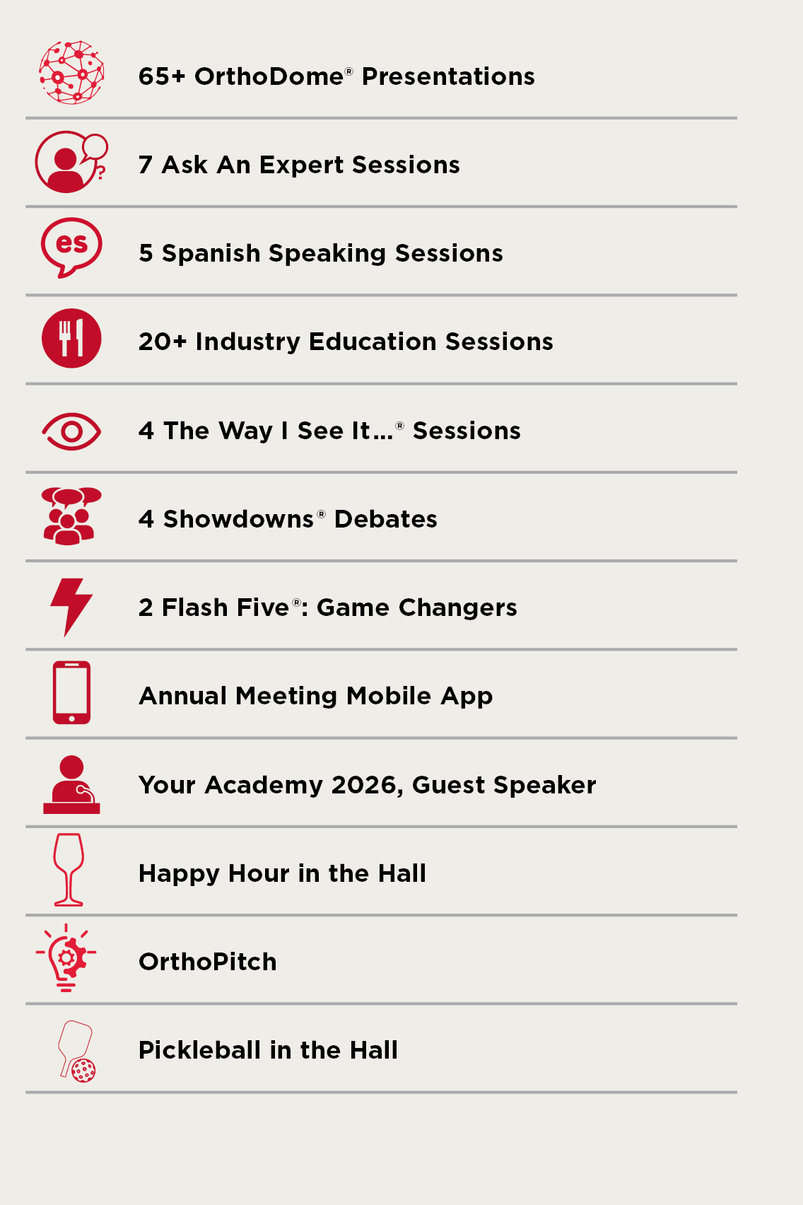 Find quick answers to common questions about Annual Meeting in Frequently Asked Questions or contact our staff team directly at meeting@aaos.org