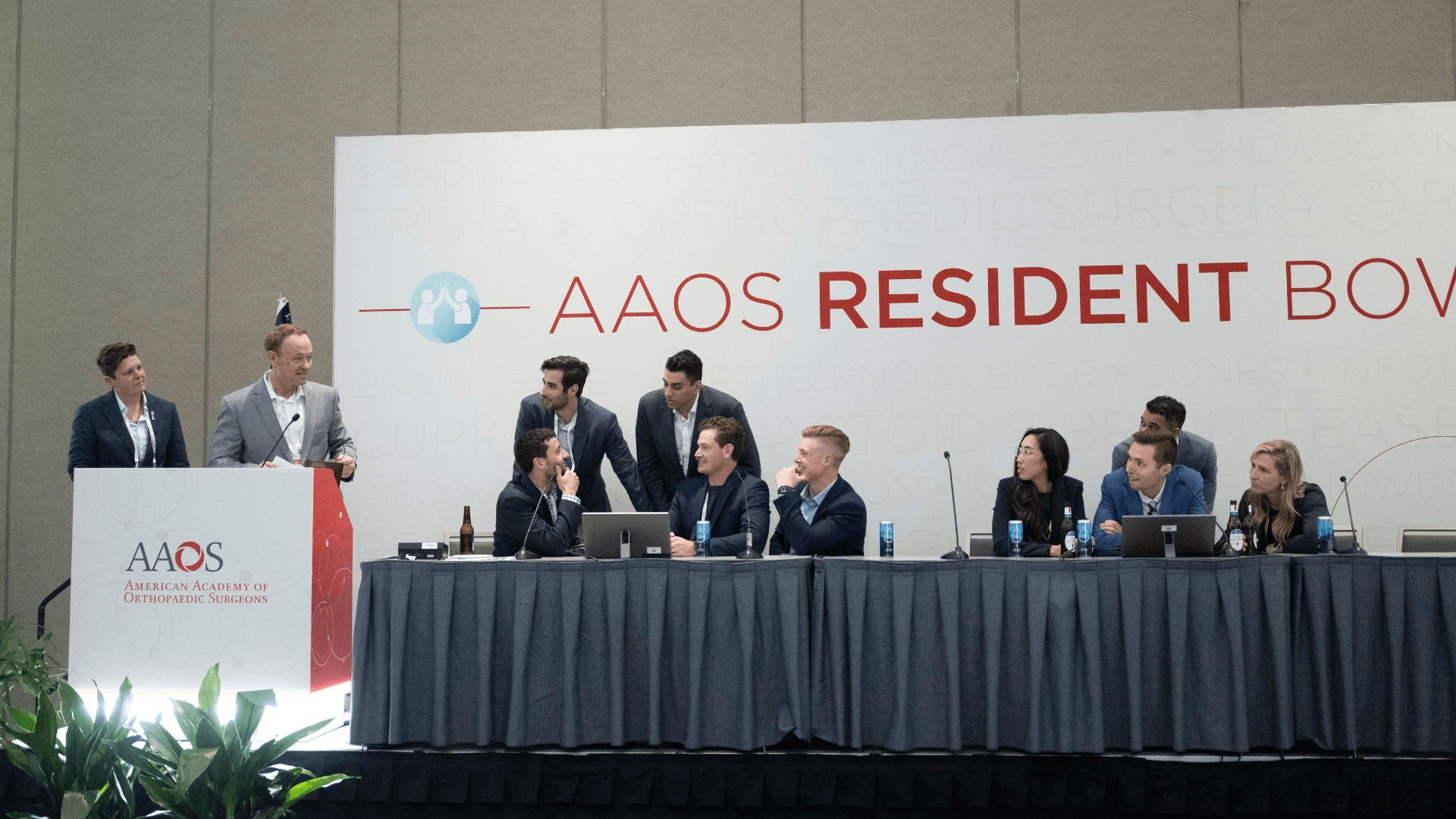 The AAOS Resident Bowl is a fun, social event held during the AAOS Annual Meeting. Orthopaedic residents team up to compete in a live trivia challenge featuring orthopaedic and general knowledge questions. It’s a great way to test your skills, connect with peers, enjoy free food and drinks, and win exciting prizes!