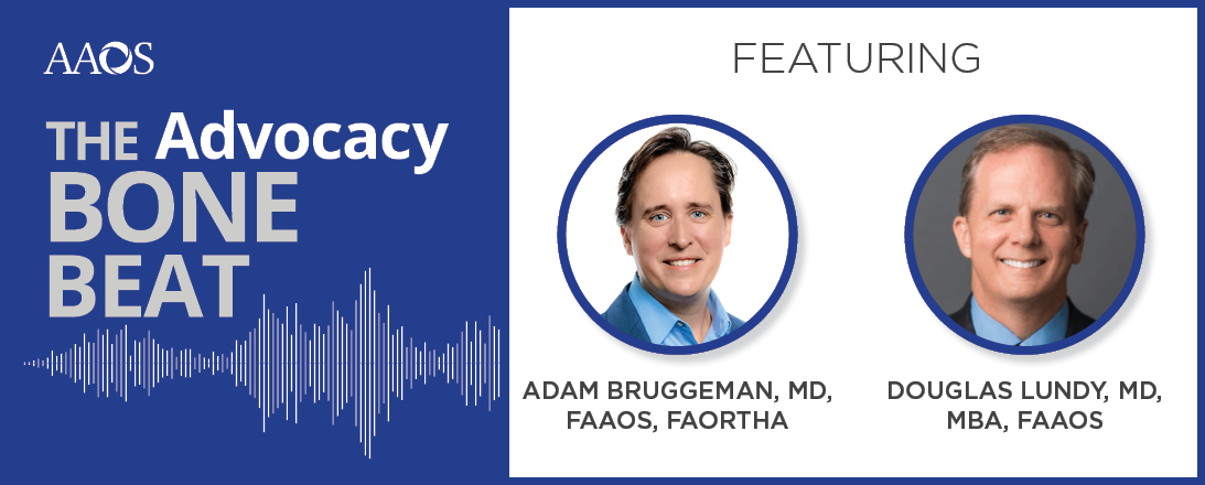 In his last episode as podcast host and chair of the AAOS Advocacy Council, Dr. Douglas Lundy passes the torch to orthopaedic spine surgeon Dr. Adam Bruggeman. Recorded live at the 2023 Annual Meeting, Drs. Lundy and Bruggeman run through some of the most pressing issues threatening musculoskeletal care.