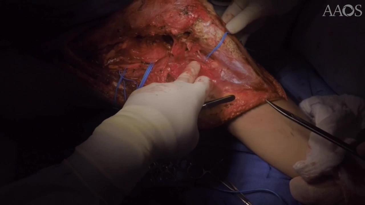 Management of osteosarcoma primarily consists of tumor resection in combination with chemotherapy. Patients with a juxta-articular osteosarcoma surrounding the knee require distal femur reconstruction, which is a challenging procedure. Preoperatively, workup should begin by obtaining radiographs of the affected extremity followed by MRI of the entire bone.