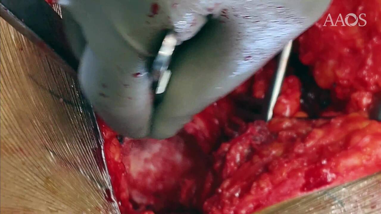 Step 2: Particulate autograft is packed into the acetabular floor, followed by reverse reaming to reconstruct the medial wall and shape the graft bed.