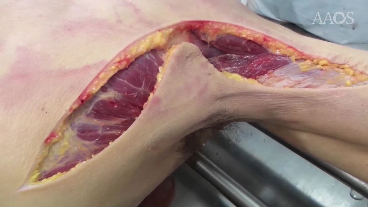 Introduction: Loss of active external rotation is a rare but disabling condition, resulting from massive, irreparable posterosuperior cuff tear, when both the infraspinatus and teres minor muscles are absent or fatty-infiltrated, with or without arthritis or from muscle denervation. Activities of daily living that specifically require active external rotation become difficult or even impossible. In these cases, the Reverse shoulder arthroplasty (RSA) can restore active elevation but cannot restore active external rotation. The L'Episcopo procedure (described in 1934, for obstetric paralysis) consists of a transfer of the latissimus dorsi (LD) and teres major (TM) laterally and posteriorly on the humerus, through a double incision (anterior and posterior), such that the function of the LD/TM changes from internal to external rotation. A modified L’Episcopo procedure (described by Pascual Boileau, in 2007), with LD and TM transfer through a single deltopectoral approach simultaneously with RSA, restores the active elevation and external rotation necessary for activities of daily living. Purpose To show the gross anatomy of the anterior and posterosuperior shoulder with emphasis in the musculotendinous anatomy of pectoralis major, LD and TM muscle and adjacent nerves. The video also shows the LD and TM transfer to posterosuperior rotator cuff tear in cadaver lab and in a patient with this pathology who also required an RSA. Additionally, we report the results of our patients with this transfer.