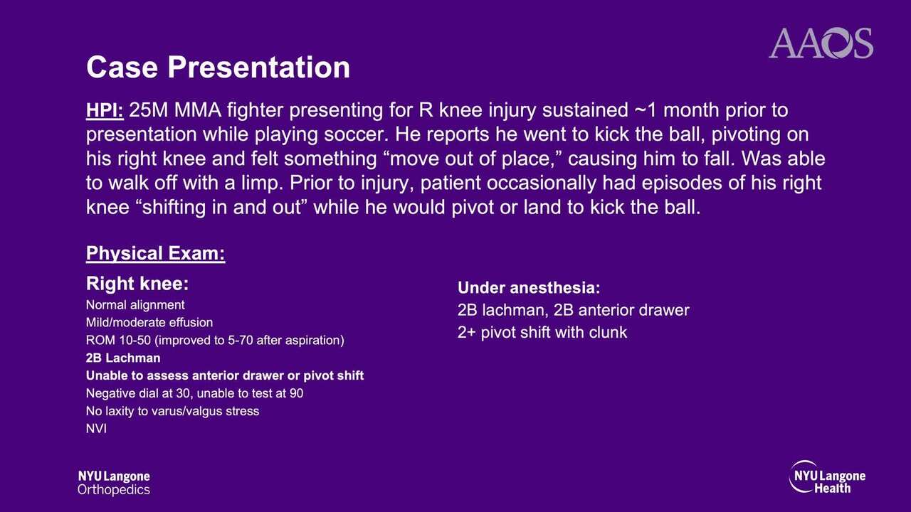 Methods: The anatomy, examination, diagnosis, and treatment options for LET are reviewed. A case of a 25-year-old male with an ACL tear, medial meniscus tear, and medial femoral condyle (MFC) injury is reviewed. This injury occurred while playing soccer and resulted in significant anterolateral rotatory instability as demonstrated by a 2+ pivot shift on exam. After a thorough discussion of risks, benefits and prognosis, the patient elected to proceed with ACL repair with a medial meniscus repair, OATS procedure to the MFC, and LET via a modified ellison technique.